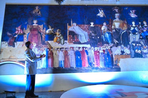 Durante el acto, el Alcalde explicó que el mural se inspira en la obra “Alegoría del buen y mal gobierno”, localizada en el Palacio Público de Siena, Italia, pintada en el siglo XIV por los hermanos Ambrogio y Pietro Lorenzetti. Destacó que “Buen Gobierno” representa no solo una expresión pictórica, sino también un reflejo del proceso histórico del municipio y de los valores democráticos, reafirmando la visión de su administración de impulsar el arte público como un vínculo entre la historia y la comunidad.