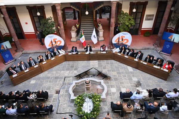 Zamora Michoacán a 18 de enero de 2026.- En el marco del 452 aniversario de la fundación de Zamora, el Cabildo del Ayuntamiento celebró la cuadragésima cuarta Sesión Solemne, un acto en el que se reafirmaron la identidad, la historia y la hermandad de la ciudad, así como el reconocimiento al talento juvenil zamorano. La ceremonia se llevó a cabo en el Palacio Federal, habilitado como recinto oficial, y contó con la participación de autoridades municipales, estatales y representantes de Ciudades Hermanas, quienes se sumaron a la conmemoración mediante material audiovisual.