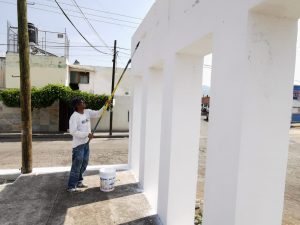 Brindan mantenimiento a parque lineal de Arboledas Aplican pintura en herrería y juegos infantiles; también mejoran teatro al aire libre Zamora, Michoacán; a 4 de