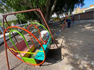 Gobierno municipal brinda mantenimiento a jardín de niños “Josefa Ortiz de Domínguez” De la comunidad del Cerrito de Catipuato Pintaron juegos infantiles, áreas deportivas y